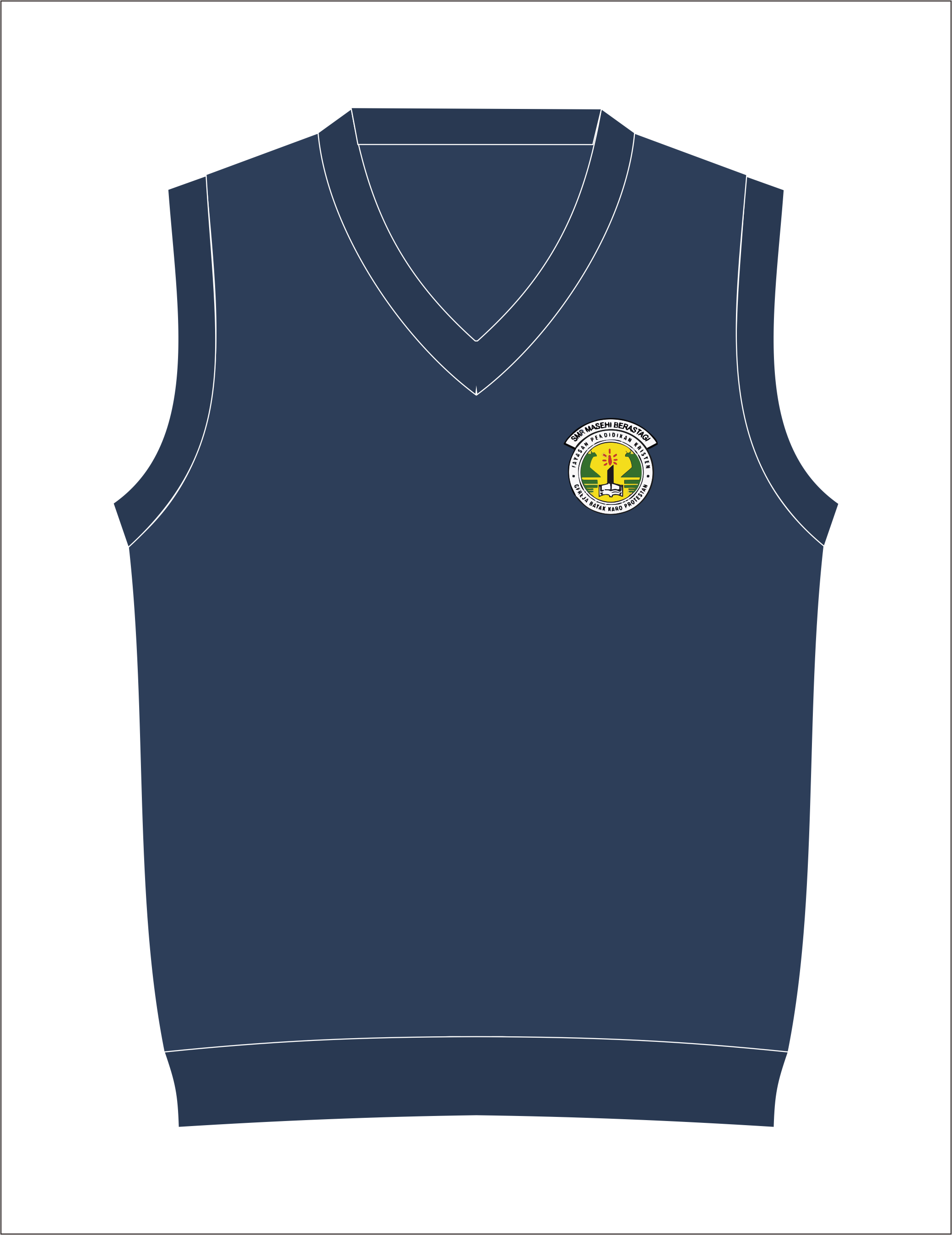 Logo sekolah yang dibordir rapi di sisi dada kiri menambah kesan resmi dan membanggakan. Model kerah V-neck membuat desain ini tetap modern dan tidak kaku, menjadikannya nyaman dipakai sepanjang hari oleh siswa-siswi, baik saat kegiatan belajar di kelas maupun dalam kegiatan sekolah lainnya.