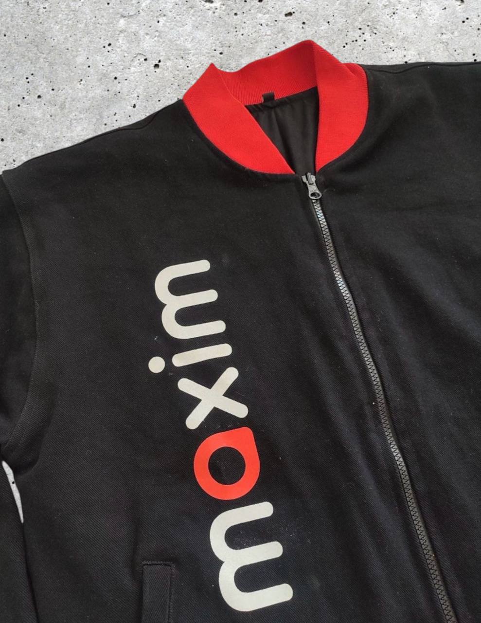 Jaket ini dilengkapi dengan tulisan “MAXIM” yang disablon di bagian depan sebelah kanan menggunakan sablon plastisol. Bagian belakang jaket menampilkan logo besar dan tulisan “MAXIM”, juga dengan sablon plastisol yang tajam dan tahan lama. Sablon plastisol dipilih karena terkenal dengan hasil cetakannya yang tebal, tajam, dan tidak mudah luntur, bahkan setelah melalui pencucian berulang.